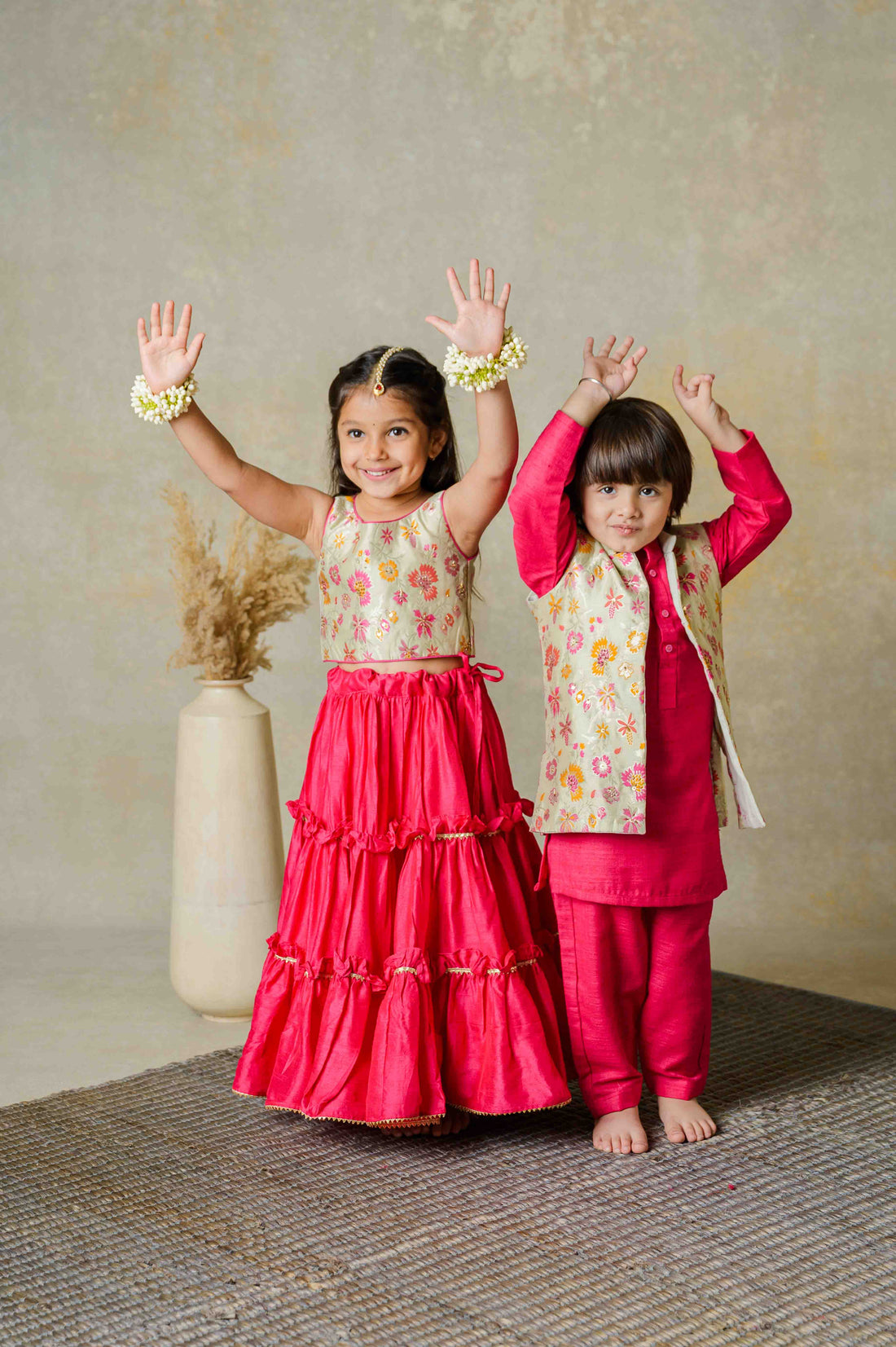 A picture-perfect duo made for little siblings who love to bloom together—our Gulaabi Gulzar Twinning...