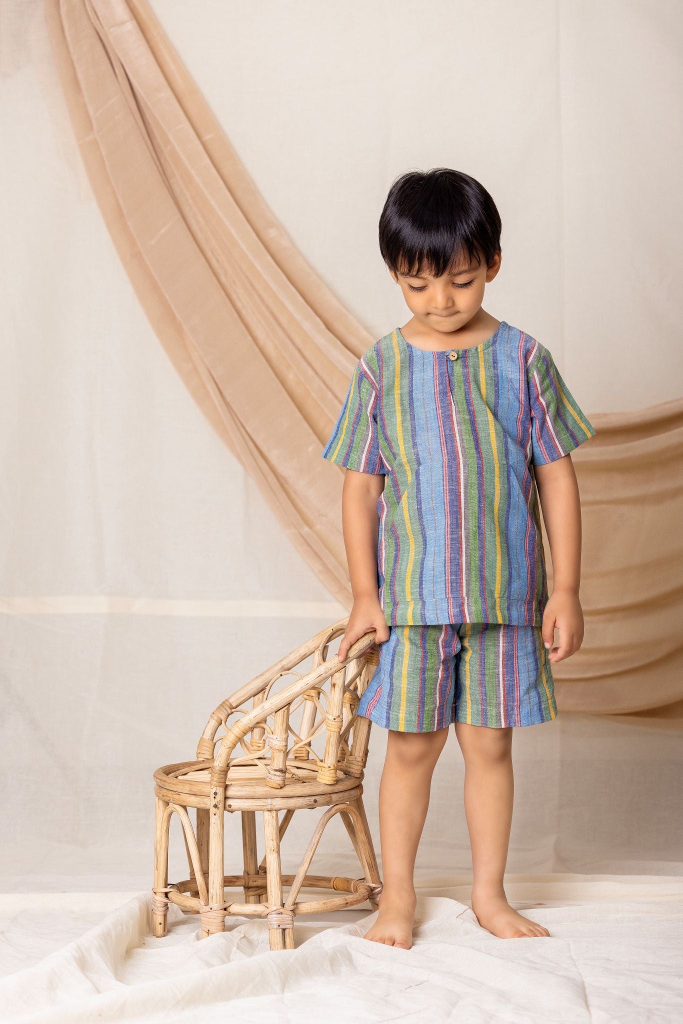 Made from breathable handloom cotton, The Indigo Co-ord Set features a loose fit and a practical front pocket for all-day comfort. Inspired by indigo skies and playful colours, it's perfect for playdates, holidays, picnics, and casual family outings—keeping your little one cool, comfy, and effortlessly stylish.