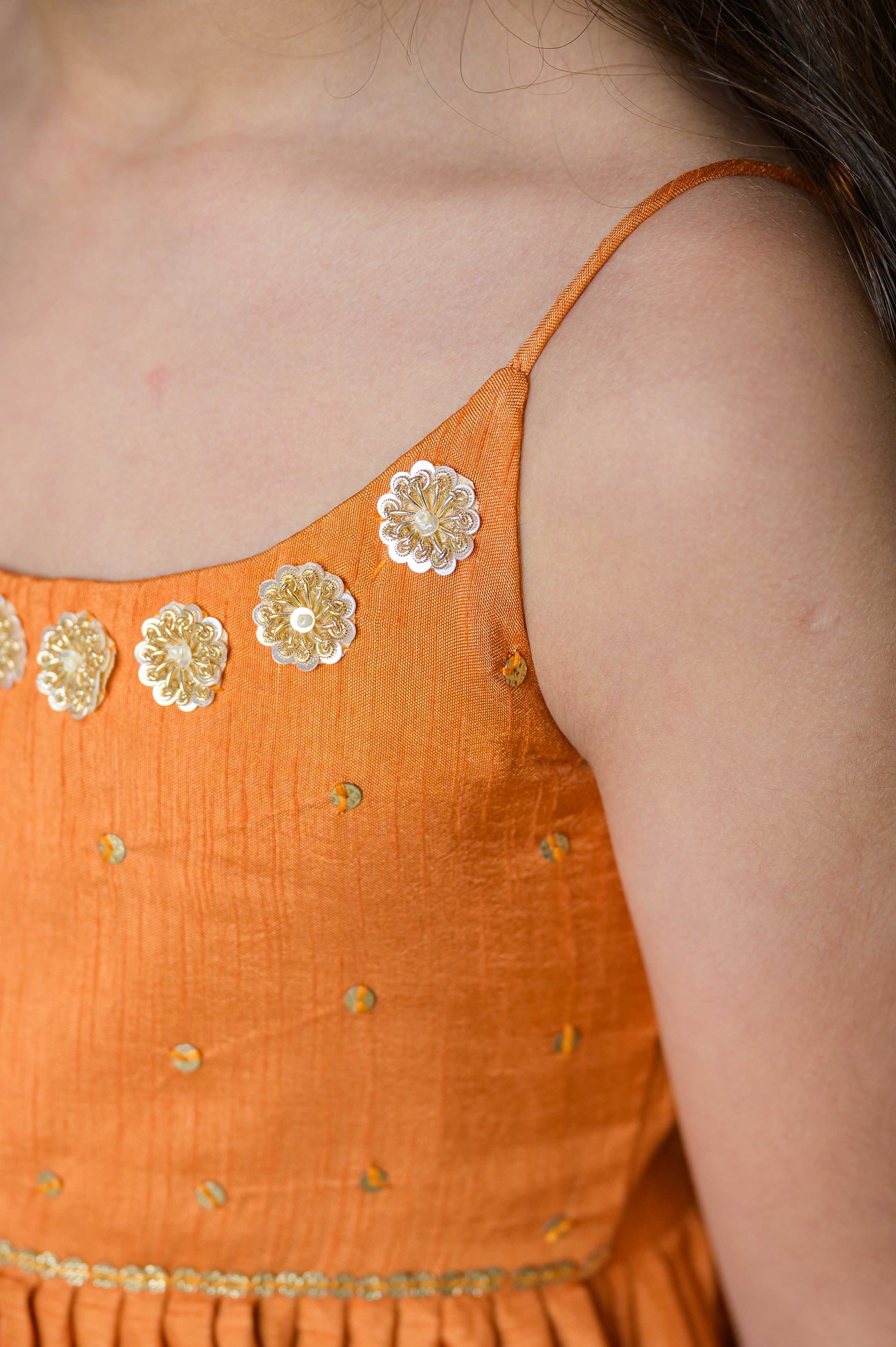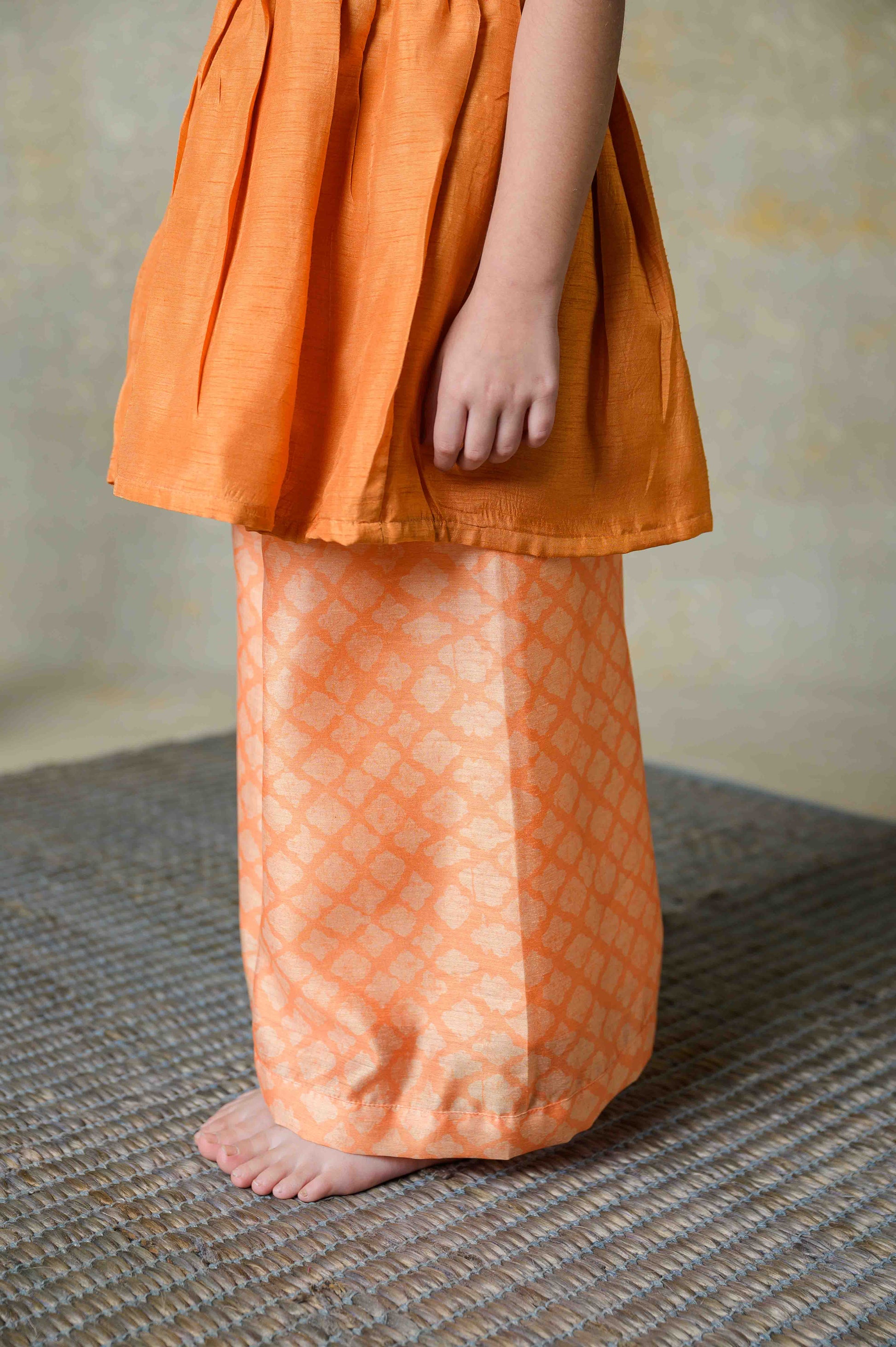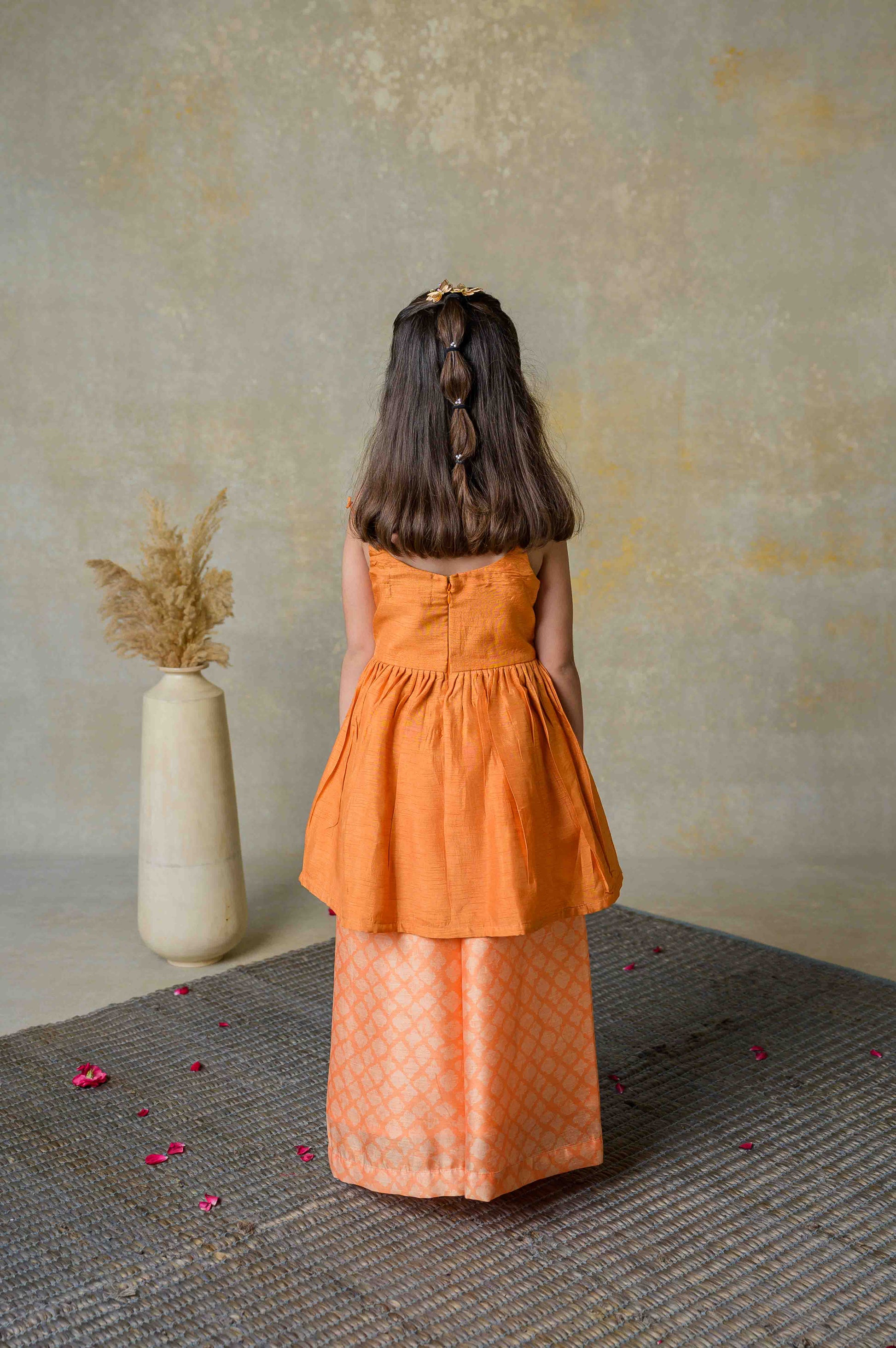 Bring home a little sunshine with our Aarunya Kurta Set, a bright and breezy festive outfit crafted for twirls, giggles, and all things joyful. The warm orange tone, paired with delicate hand embroidery, makes it a perfect pick for weddings, sangeet functions, and family celebrations.