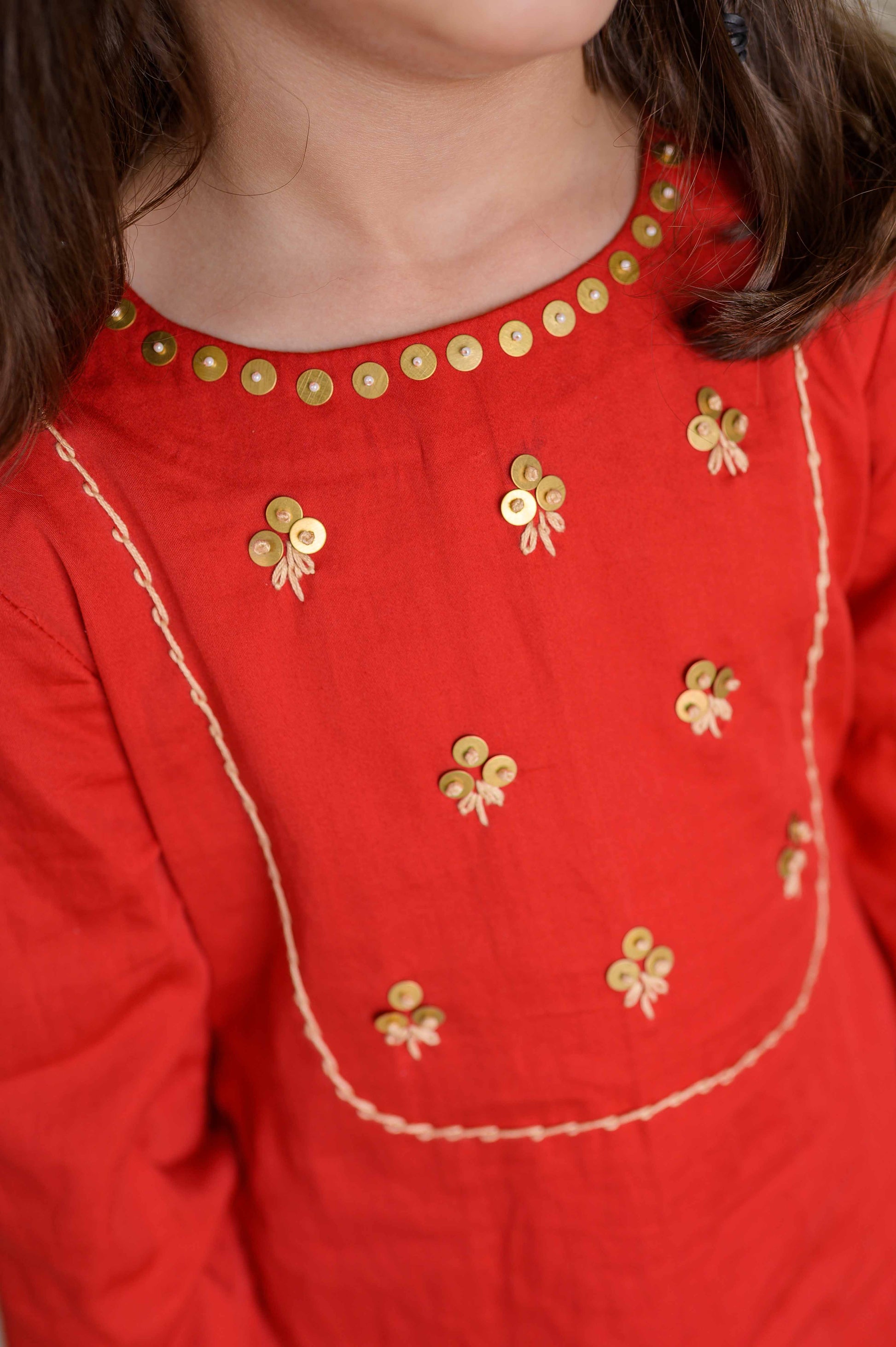 A little sparkle, a lot of tradition — the Rooh Rani Set is crafted in rich silk and drenched in the regal hues of Rooh Afza. With its playful bell sleeves, delicate sequin detailing, and embroidery that dances across the kurta and sleeves, this set is made for little queens who love to shine.