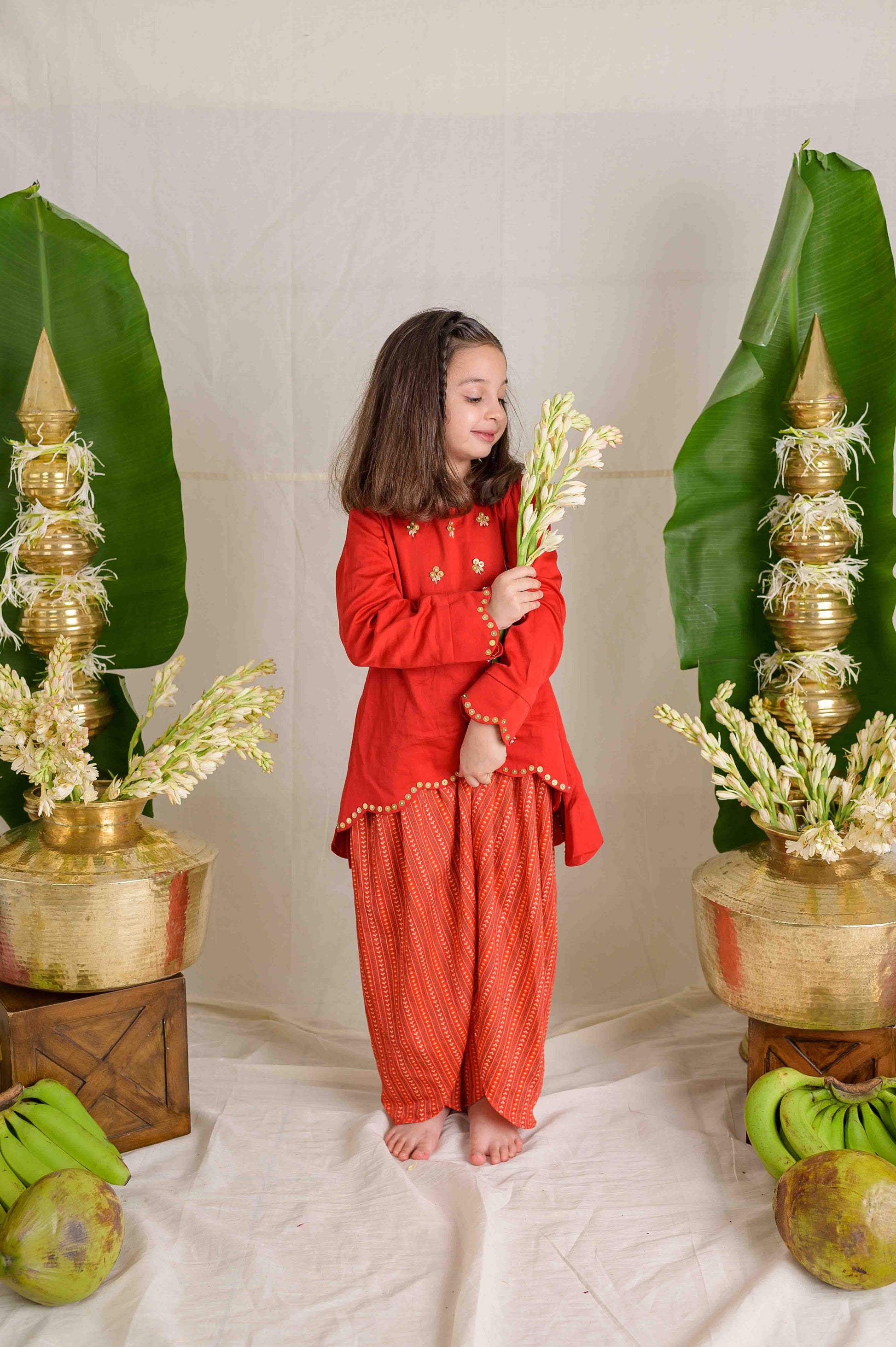 We use 100% cotton, muslin, and handloom fabrics — all breathable, soft, and gentle on children’s skin. Each piece is designed to ensure comfort while looking festive and stylish.